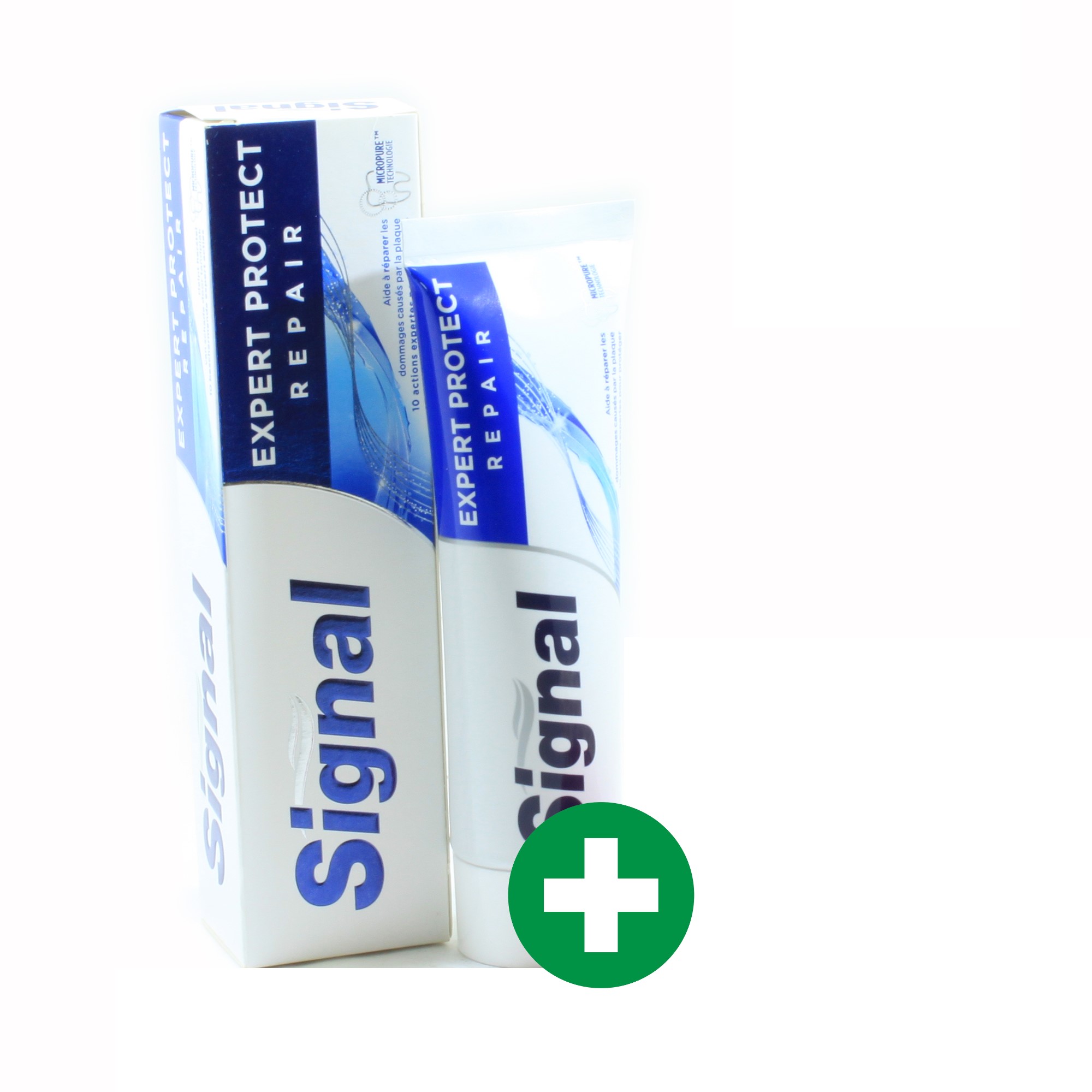 سیگنال از برندهای پرطرفدار و با سابقه‌ای بیش از ۴۰ سال، دارای گستره وسیعی از محصولات تخصصی در زمینه مراقبت از دهان و دندان بوده و به میلیون‌ها نفر در دنیا کمک‌رسانی کرده است. خمیر دندان محافظت کننده سیگنال مدل Expert Protect Repair یکی از محصولات محبوب این برند است که دندان‌ها را از وجود پلاک‌های دندانی حفظ می‌کند. این محصول حاوی ماده آنتی‌باکتریال سیترات زینک بوده که تشکیل جرم روی دندان جلوگیری نموده و در نتیجه دندان‌ها تغییر رنگ نخواهند داد. در خمیردندان اکسپرت پروتکت از تکنولوژی (MICROPURE) استفاده شده که حاوی ریز ذره‌هایی برای پاکسازی بهتر پلاک‌های بین دندان‌ها است.