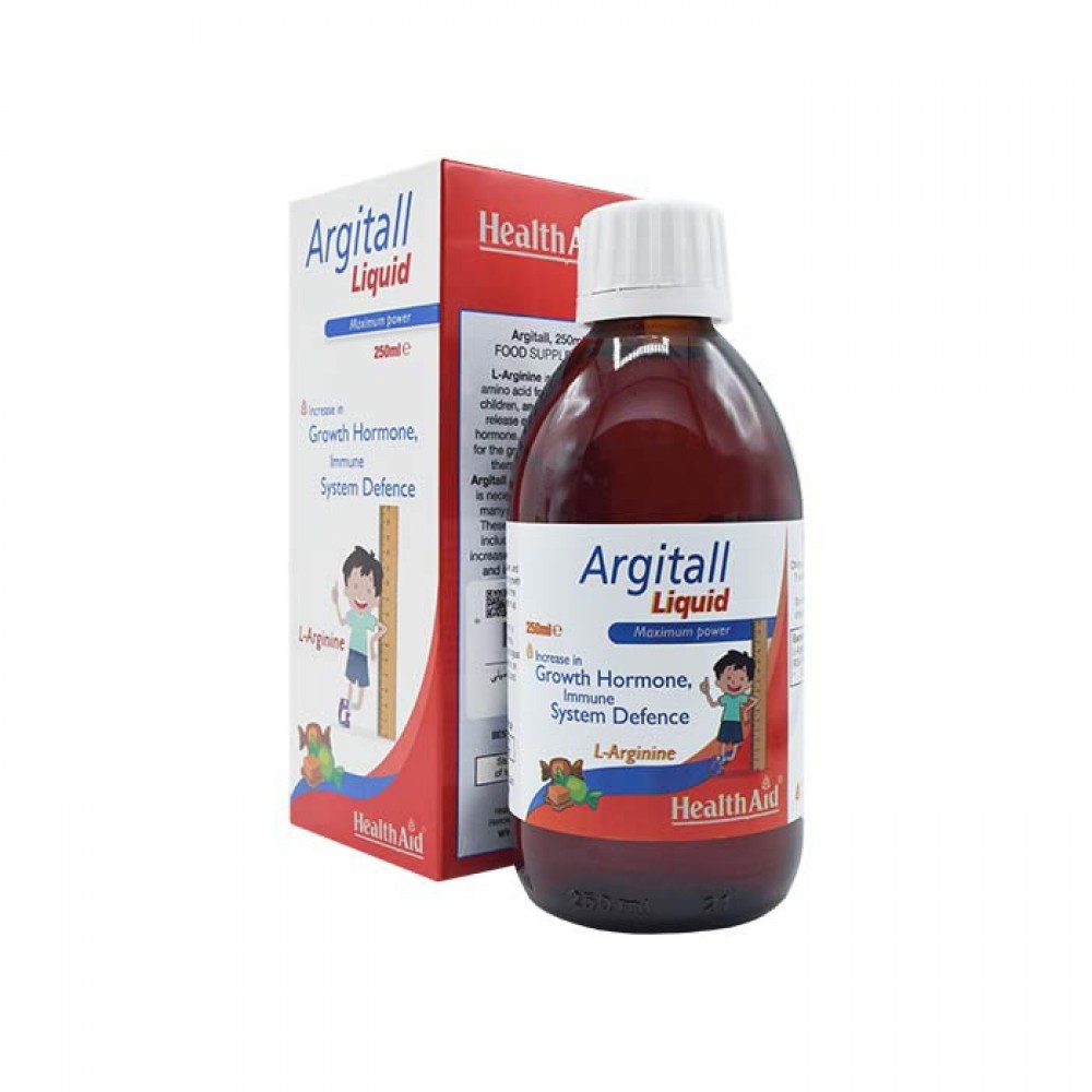 شربت آرژیتال هلث اید از مکمل‌های حاوی ال آرژنین یا همان هورمون رشد است. این ماده یک اسید آمینه نیمه ضروری که برای به انجام رسیدن بسیاری از فرآیندهای مربوط به فیزیولوژی عضلات لازم است. پاکسازی رادیکال‌های آزاد از خون، بهبود عملکرد سیگنال‌های سلول‌های عضلانی، رهاسازی هورمون رشد، حمایت از کلسترول خوب و تنظیم متابولیسم چربی و سطح نمک در بدن از وظایف این ماده در بدن است. از این شربت برای کمک به سلامت و رشد کودکان، استفاده می‌شود. این محصول می‌تواند به ترشح بهتر هورمون رشد کمک کند که منجر به رشد بهتر استخوان و افزایش قد خواهد شد. آرژنین در آجیل مانند بادام زمینی، بادام و همچنین در شکلات و کشمش نیز موجود است.
